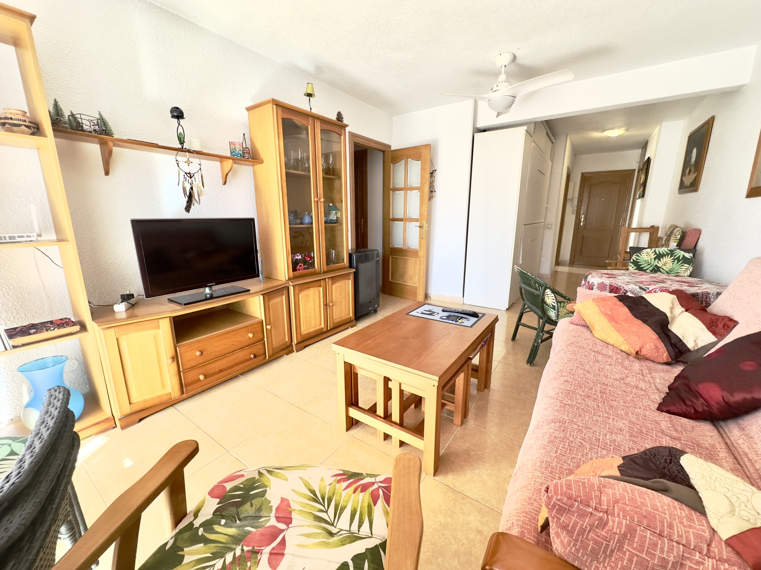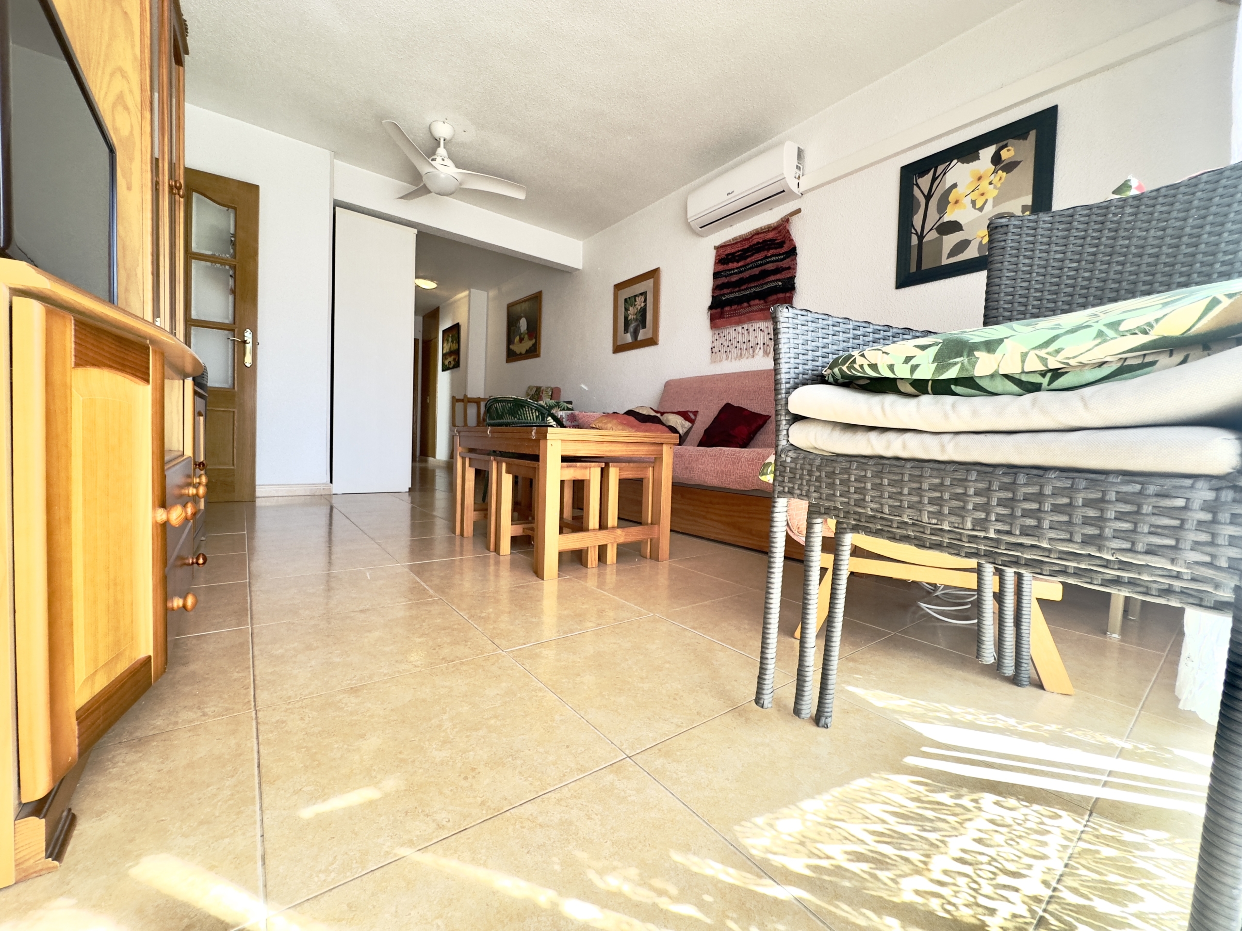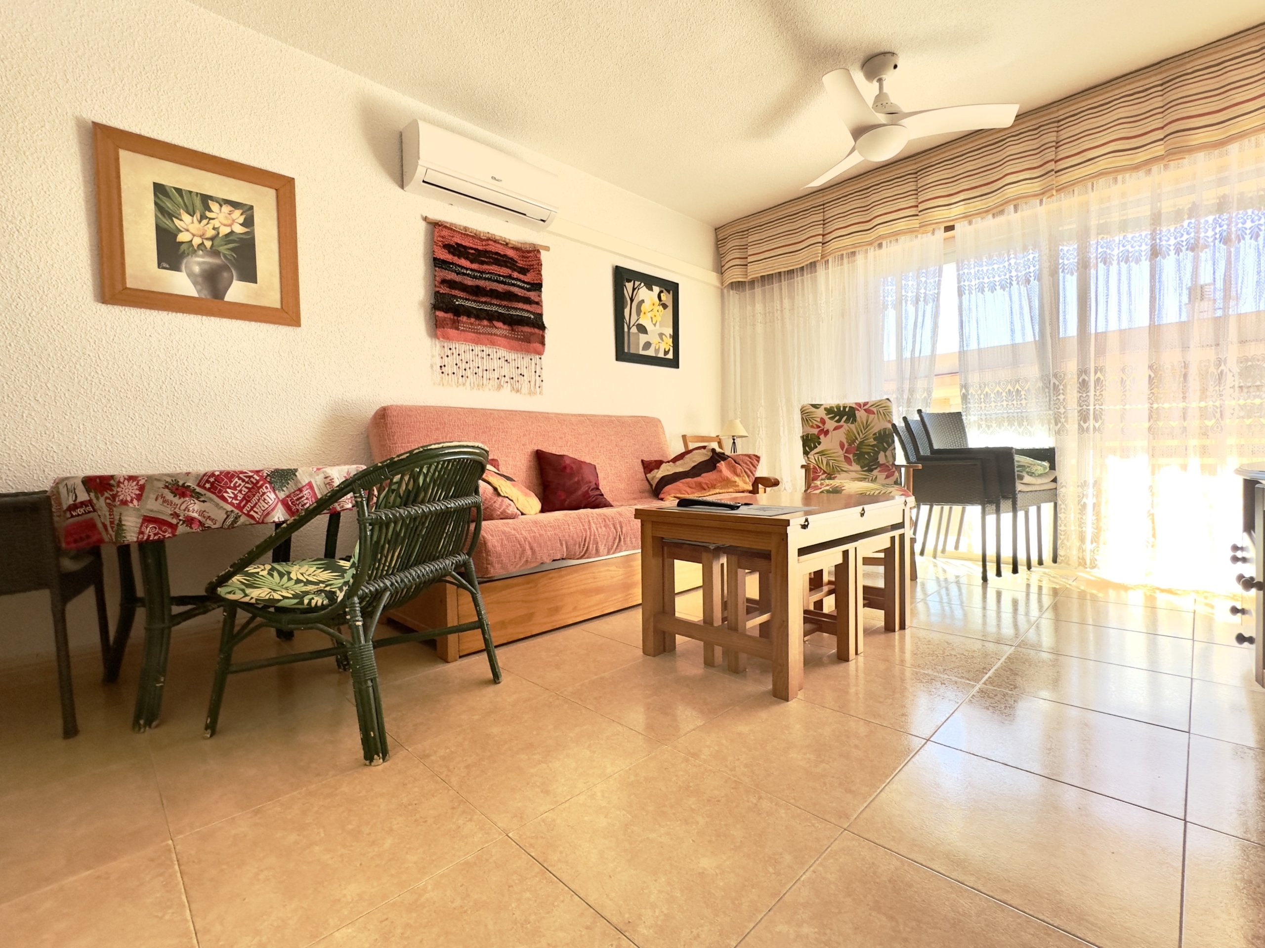 – Salón: Amplio y luminoso salón, que cuenta con aire acondicionado y ventiladores, con acceso directo a una gran terraza soleada donde podrás disfrutar de agradables momentos.