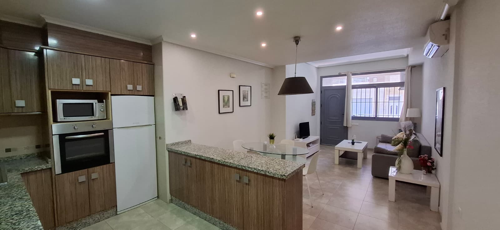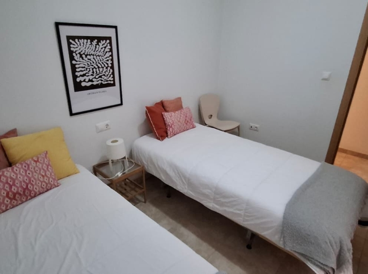 La vivienda dispone de 71 m², distribuidos en 2 habitaciones, 2 baños completos,1 de ellos suite, cocina americana totalmente integrada al salón y una agradable terraza.Orientacion oeste,soleado por la tarde.Unos 200 metros de bonisima playa de Guardamar . Cuenta con aire acondicionado y se alquila amueblada, lista para entrar a vivir.