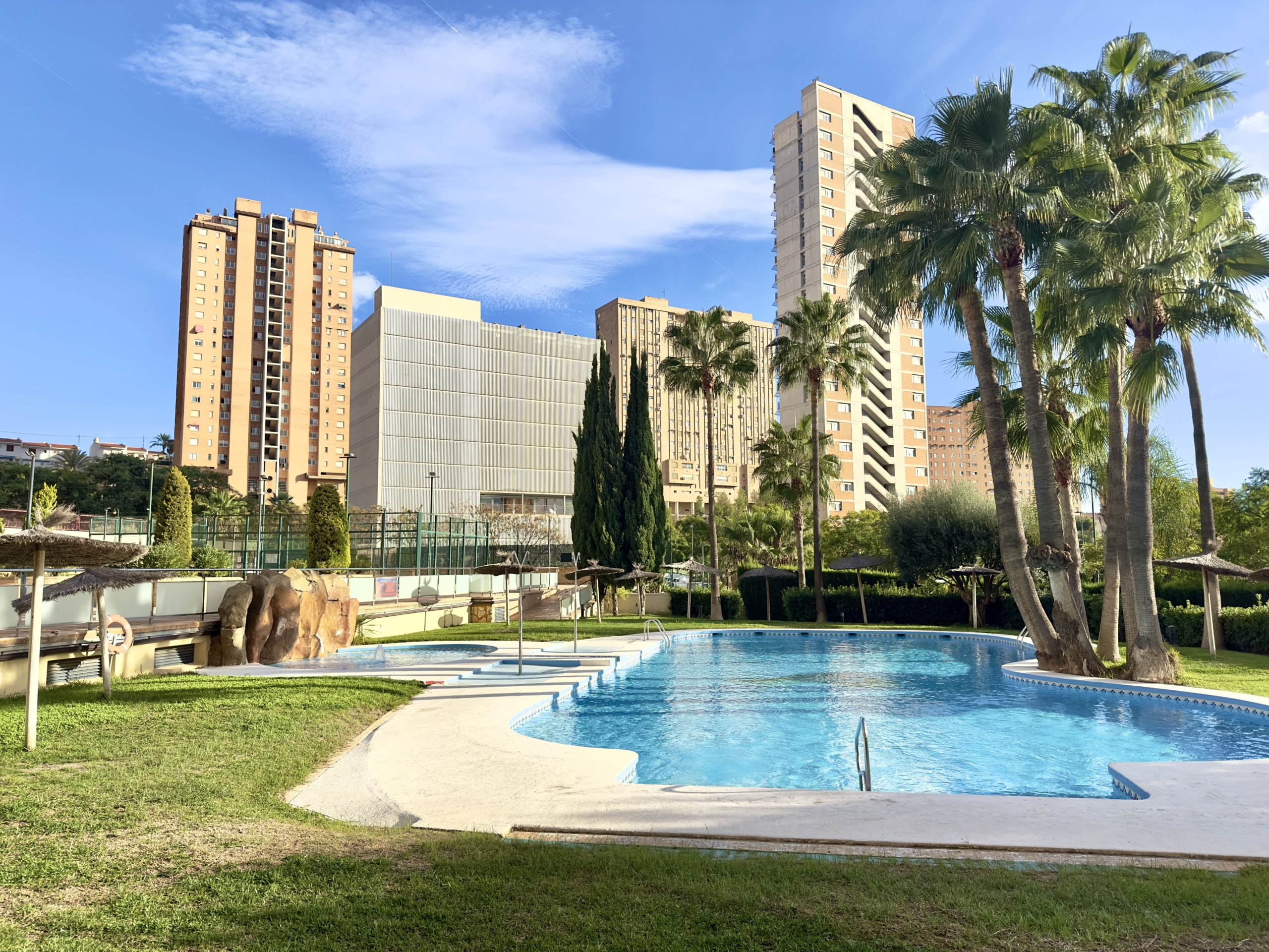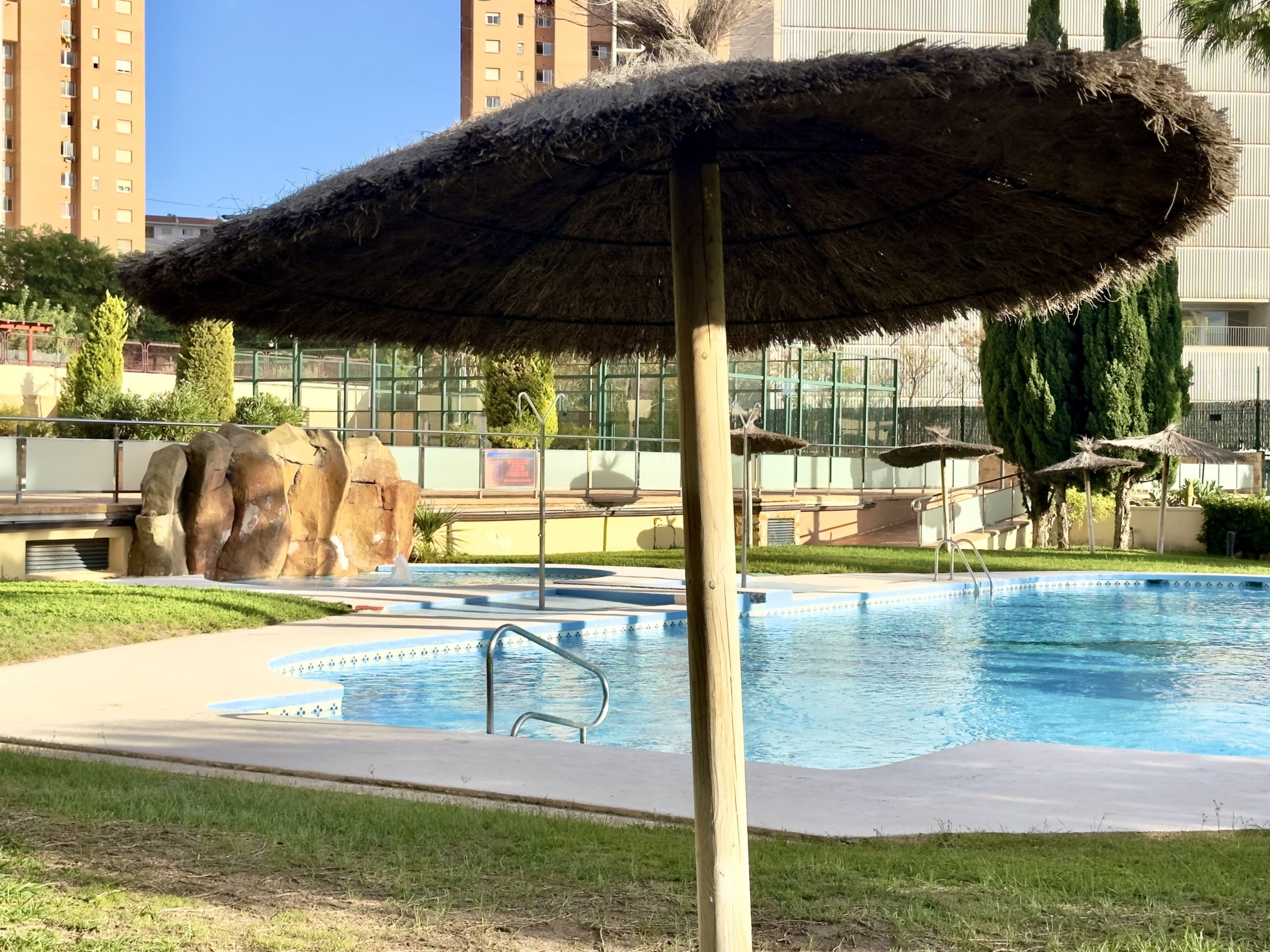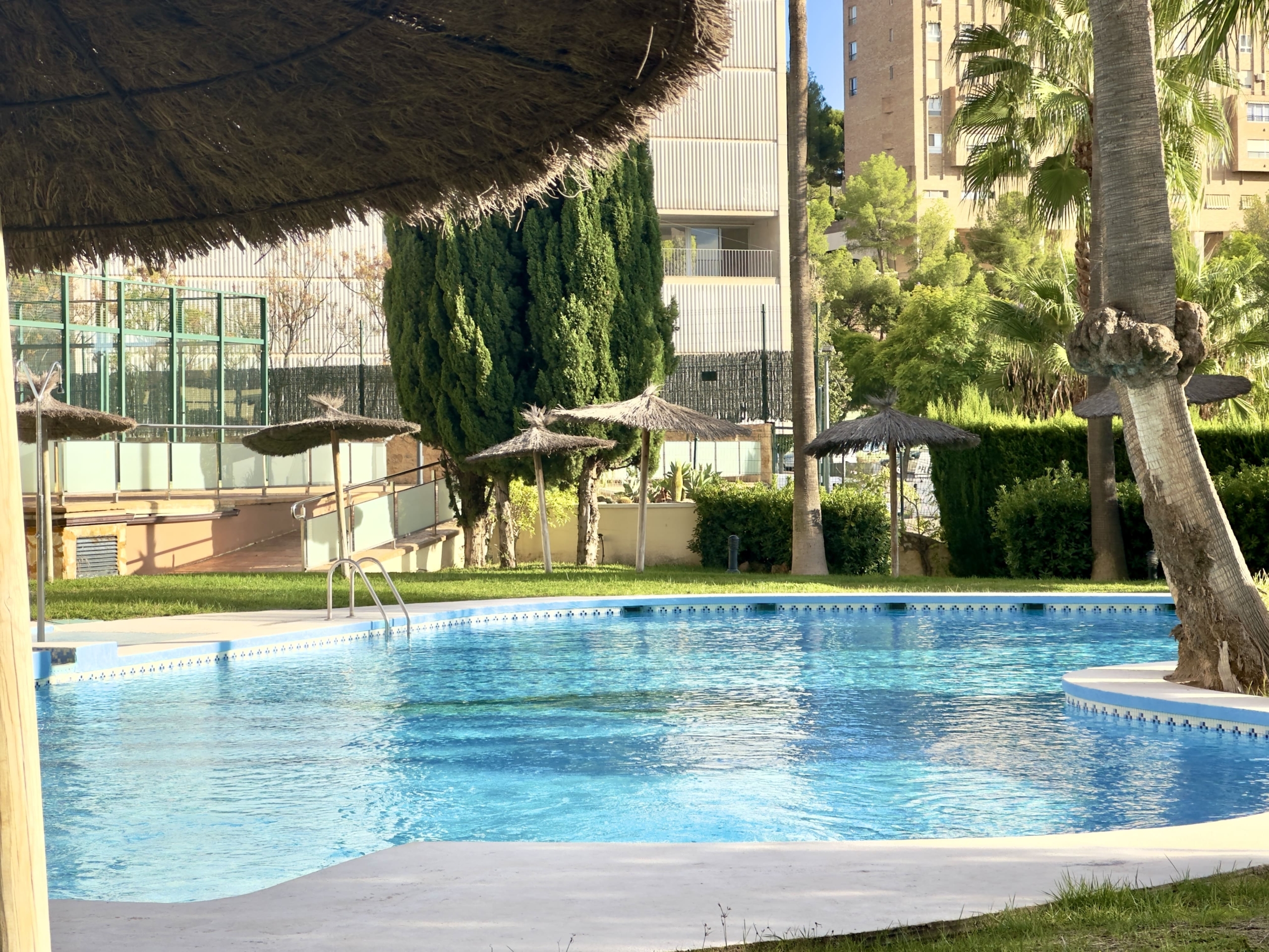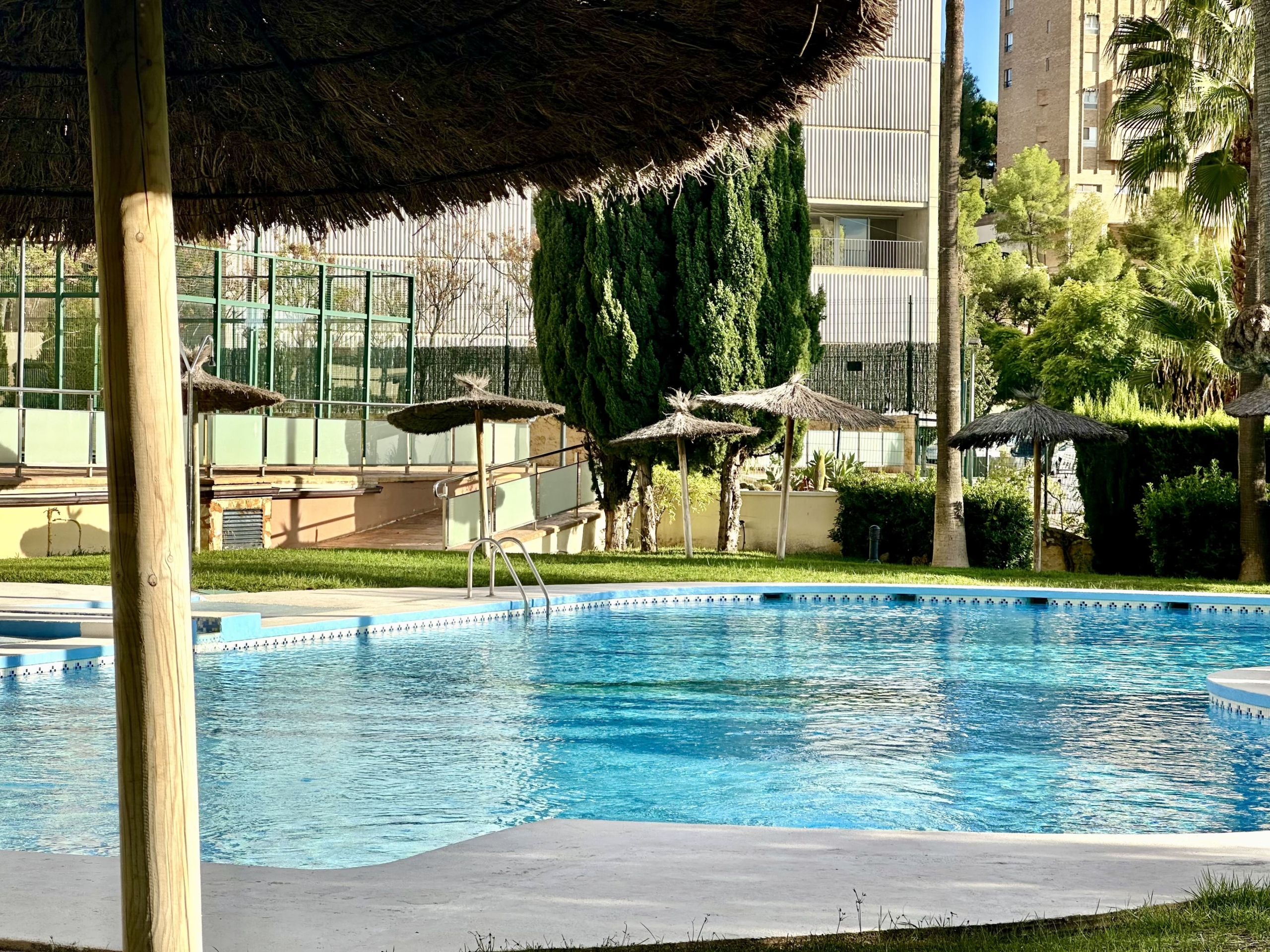 El residencial privado ofrece excelentes zonas comunes, con tres piscinas, amplios jardines y pista de pádel, ideales para disfrutar del sol y del aire libre en un entorno tranquilo y exclusivo.