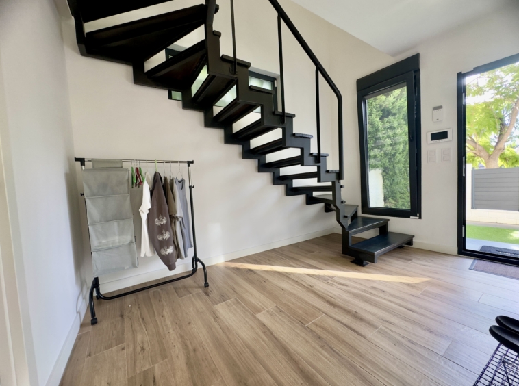 La vivienda ofrece 100 m² construidos distribuidos en dos plantas, además de una encantadora terraza-jardín privada de 30 m², equipada con ducha exterior, mobiliario de jardín y un ambiente ideal para relajarse o disfrutar con amigos y familia.