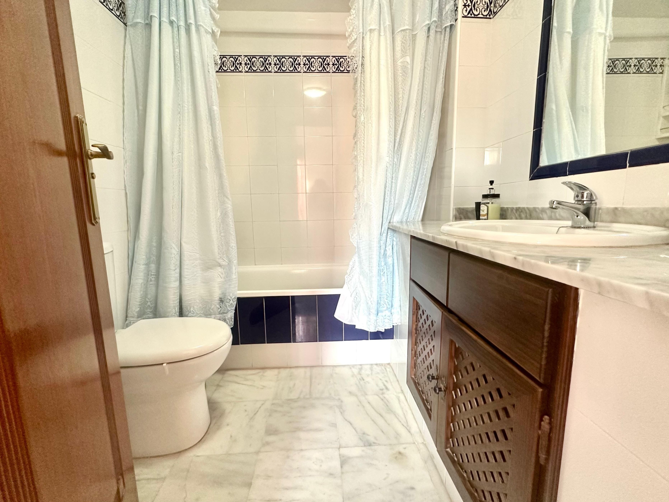 Este apartamento se encuentra en la 5ª planta de un edificio con 4 ascensores, ofreciendo comodidad y vistas despejadas. Cuenta con 2 dormitorios amplios y luminosos, 2 baños completos (uno en suite con bañera y otro con plato de ducha), una cocina americana totalmente equipada con horno, microondas y nevera, y un amplio salón ideal para relajarse y compartir buenos momentos. La vivienda tiene una orientación oeste, garantizando sol en su terraza soleada, perfecta para disfrutar del atardecer.