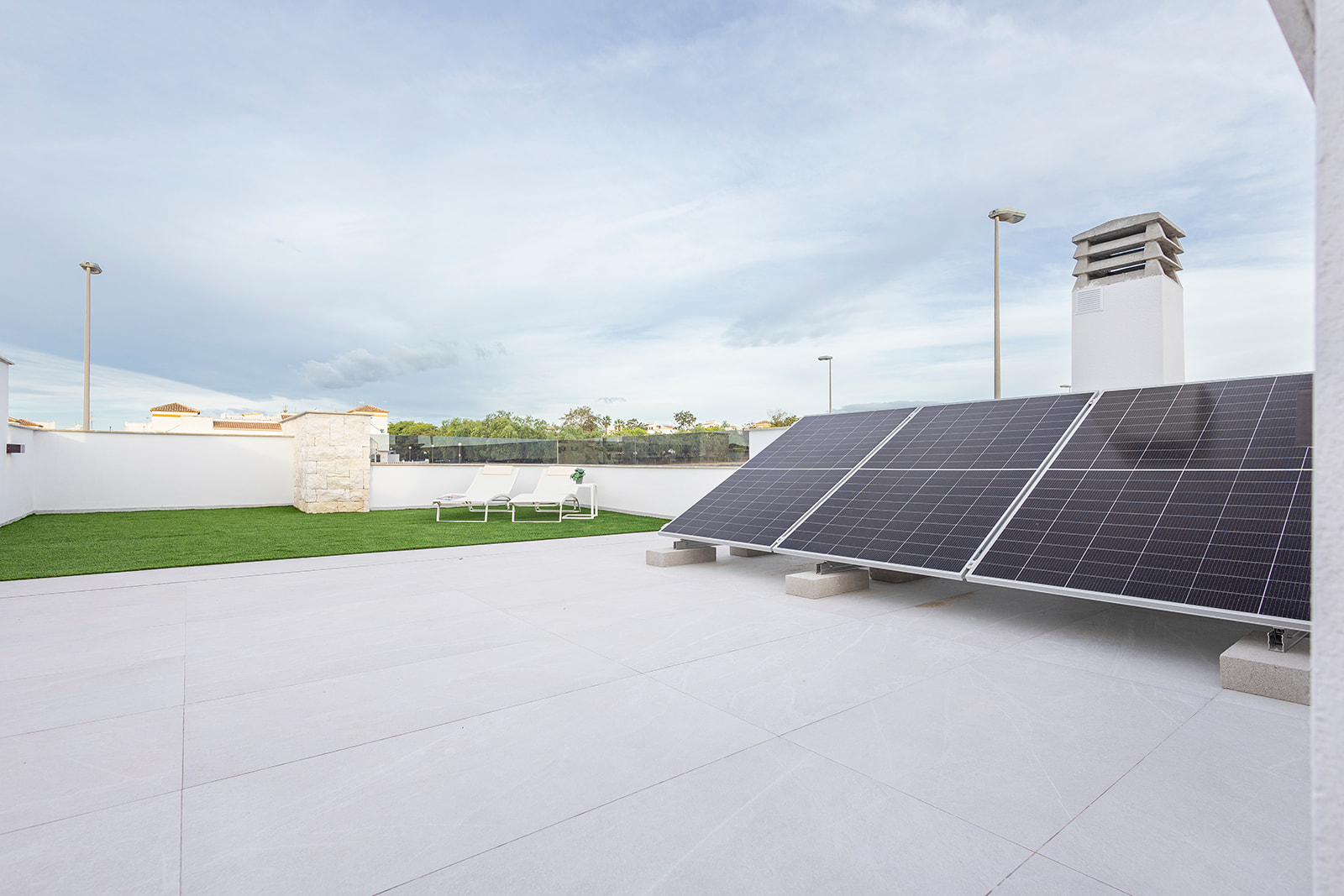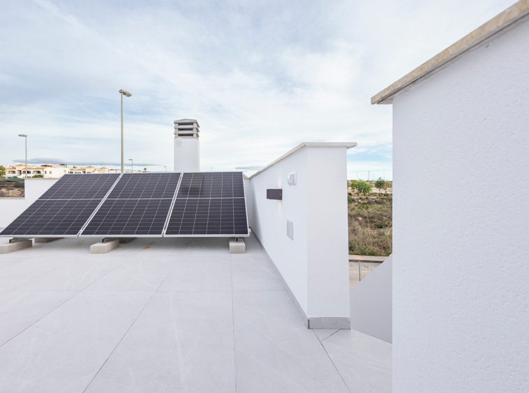 Las calidades de serie elevan el nivel del proyecto. Incluyen persianas automatizadas, suelo radiante en todos los baños, preinstalación de aire acondicionado por conductos y columna de hidromasaje en el baño principal. Además, cuentan con Certificación Energética Clase A, lograda gracias a sus aislamientos termo-acústicos reforzados, cristales de alta eficiencia ClimaGuard Premium, cubierta aislada y el uso de energías renovables. Cada vivienda incorpora 3 paneles fotovoltaicos para producir energía eléctrica.
