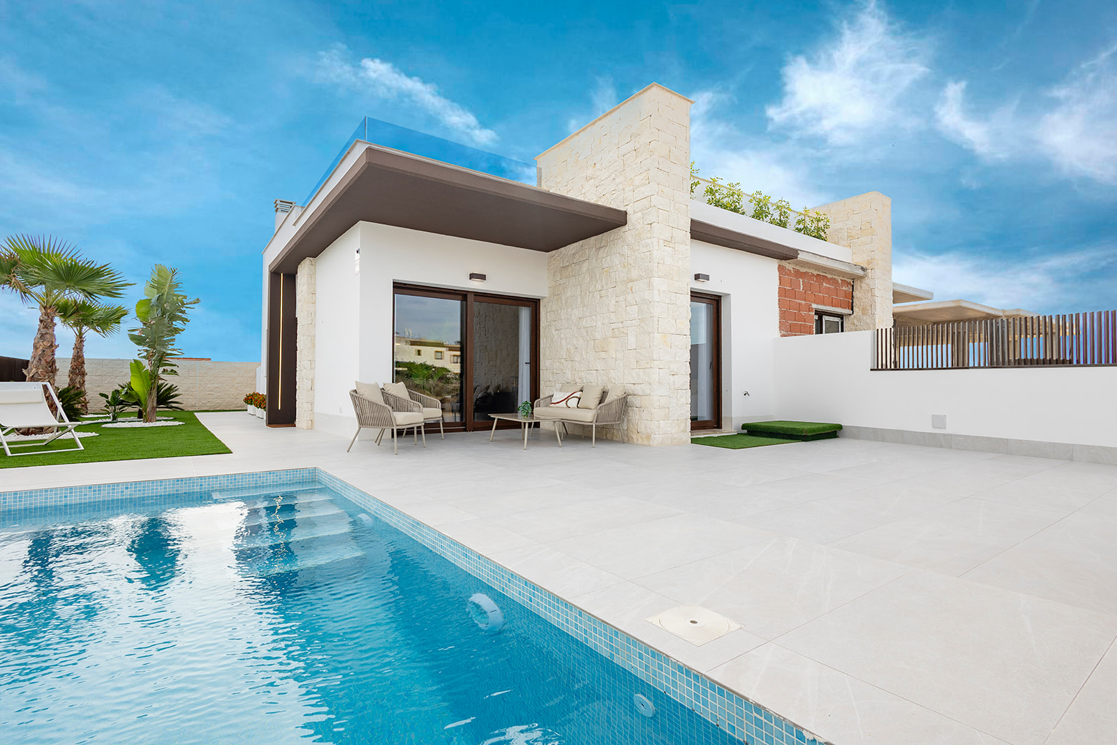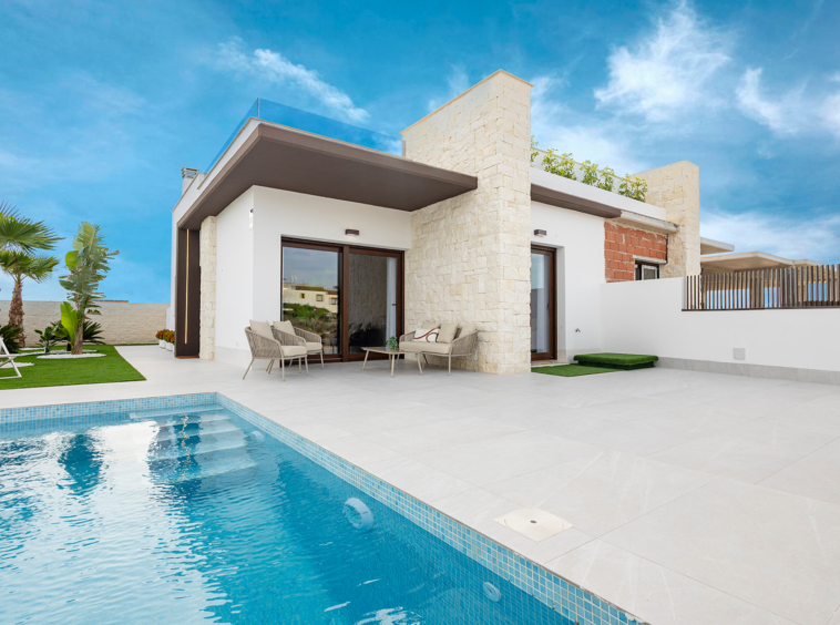 Estas viviendas destacan por su óptima relación calidad-precio. Ofrecen parcelas independientes con espacio de aparcamiento y una piscina privada de 5 × 2,5 m. Cuentan con acabados de primera calidad y un diseño innovador tanto en interior como en fachada. Su distribución, toda en planta baja, garantiza comodidad, amplitud y funcionalidad en el día a día.